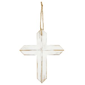 • 11" Rustic Hanging Cross - White